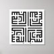 Kufi square calligraphy design with black and white colours combination. Ready to hang - no framing needed! Perfect for the Muslim home - may it bring blessings to you always. Originally designed by Ed Mohamad a.k.a. Zamrudi Che Mohamad from Syled Studios.