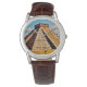 The watch looks really great! Very sharp and well done. The leather band is really nice, though for a man's watch I think it should be longer. Unfortunately, it isn't big enough for my husband's wrist but I will get a replacement because he is very excited to wear it!