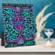 Mola butterfly, Kuna Indian butterfly, Cuna Mariposa, colorful butterfly, blue pink turquoise, Virginia Vivier, Vagabond Folk Art, witches butterfly, Southwest butterfly, Folk Art Decor, Southwest Decor.
