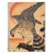Kuniyoshi Hawk notebook. Ukiyo-e from Edo Period Japan. Utagawa Kuniyoshi mastered multiple genres of painting and woodblock printing. The artist was especially fond of animals, and his Hawk represents one of the finest renderings of the Japanese bird of prey from the period. The hawk stands atop a ragged tree branch on one claw, spreading its wings in front of an orange falling sun. A beautiful gift for fans of Kuniyoshi, hawk paintings, and Japanese art.
