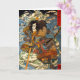 Kuniyoshi Samurai Greeting Card. Ukiyo-e woodblock from Edo Period Japan. Utagawa Kuniyoshi designed some of the most vibrant and impressive samurai paintings of the Edo period. His depiction of Shimamura Danjo Takanori features the samurai in full armour wielding his naginata while riding the waves of the sea on the backs of two blue crabs. The samurai has been hit by multiple arrows, but fights on fiercely with waves and crabs rising in the background. A great gift for fans of Utagawa Kuniyoshi, samurai paintings, and Japanese art.