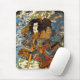 Kuniyoshi Samurai mouse pad. Ukiyo-e woodblock from Edo Period Japan. Utagawa Kuniyoshi designed some of the most vibrant and impressive samurai paintings of the Edo period. His depiction of Shimamura Danjo Takanori features the samurai in full armour wielding his naginata while riding the waves of the sea on the backs of two blue crabs. The samurai has been hit by multiple arrows, but fights on fiercely with waves and crabs rising in the background. A great gift for fans of Utagawa Kuniyoshi, samurai paintings, and Japanese art.