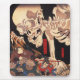 Kuniyoshi Skeleton mouse pad. Ukiyo-e woodcut from 1845 Edo Period Japan. Utagawa Kuniyoshi was one of the last great masters of ukiyo-e style, and Mitsukini Defying The Skeleton is one of his most recognised and celebrated works. The woodcut features the hero Kuniyoshi drawing a swords against a giant skeleton looking ominously down on him. A beautiful and frightening gift for fans of Utagawa Kuniyoshi, Skeleton paintings, and Japanese art.