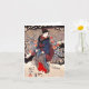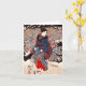 Kuniyoshi Three Women note card. Ukiyo-e from Edo Period Japan. One of Utagawa Kuniyoshi’s most famous works, Three Women is a three panelled woodblock design depicting three Japanese women standing beside a tree on a snow covered day. Red winter flowers bloom forth magically, and all three women are appareled in traditional Japanese dress with wooden clogs. One woman carries a Japanese umbrella. A pretty gift for fans of Utagawa Kuniyoshi, Ukiyo-e, and Japanese art.