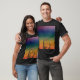 I give wanted to give this a 4 instead of a 5 because these Basic DARK T0shirts run unexpectedly SLIM or Narrow. Which is great if you do not have a potbelly, but I have a paunch. It isn't the shirt's fault that I've got a beer belly. The design and shirt itself is a quality cotton shirt. The color is more of a deep purple, but still a very pretty color. The Basic DARK T-shirts run a bit SLIMMER than the Basic Ts. The neck is a fraction narrower (or seems to be narrower) also. I'm a paunchy middle-aged woman and my neck is 12 inches (31cm) thick and the neckline fell about the same as in the photo of the man, and I had the desire to tug it a bit. So if you're a thick necked man or like loose shirts, be aware these are slimmer shirts. Once I get rid of my lockdown paunch it'll look great. The shirt washed well in cold water with no apparent bleeding. We don't have a dryer, so it hung dry. Did not shrink. Love the colors and the design. The design looks smaller on my shirt than it does on the model on-line. But still, it looks good on the shirt. The printing looks as it does on the model, just the size seems fractionally smaller. Washed garment in cold water, hung dry and design appeared unaffected.