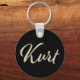 Ein sehr schöner edler personalisierter Button Schlüsselanhänger im whitegold Lettering Look auf schwarz für Kurt.