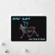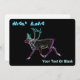 A bright, neon-like rendering of a caribou, also known as a reindeer. Inuktitut text reading "Kuvianak Innovia" (ᑯᕕᐊᓇᒃ ᐃᓄᕕᐊ - Merry Christmas), in the syllabic alphabet adopted in Nunavut, also appears in glowing blue and white. Add your own additional text. Inspired by the Northern Lights.
