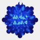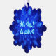 A swarm of blue fractal snowflakes. Inuktitut text reading "Kuvianak Innovia" (ᑯᕕᐊᓇᒃ+ᐃᓄᕕᐊ - Merry Christmas), in the syllabic alphabet adopted in Nunavut, also appears in glowing blue and white. Add your own additional text on the reverse side.