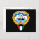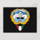 The emblem of Kuwait (Arabic: شعار الكويت) was adopted in 1962 and it consists of the shield of the flag design in colour superimposed on a golden falcon with wings displayed. The falcon supports a disc containing a boom sailing ship, a type of dhow, with the full name of the state written (in Arabic) at the top of the disc.