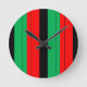 Kwanzaa Colours Red Black Green Stripes Pattern Round Clock