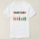 A white T-shirt with a Kwanzaa design, including red, green and black candles, from a handpainted paper collage by Judy Adamson.