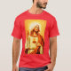 I give wanted to give this a 4 instead of a 5 because these Basic DARK T0shirts run unexpectedly SLIM or Narrow. Which is great if you do not have a potbelly, but I have a paunch. It isn't the shirt's fault that I've got a beer belly. The design and shirt itself is a quality cotton shirt. The color is more of a deep purple, but still a very pretty color. The Basic DARK T-shirts run a bit SLIMMER than the Basic Ts. The neck is a fraction narrower (or seems to be narrower) also. I'm a paunchy middle-aged woman and my neck is 12 inches (31cm) thick and the neckline fell about the same as in the photo of the man, and I had the desire to tug it a bit. So if you're a thick necked man or like loose shirts, be aware these are slimmer shirts. Once I get rid of my lockdown paunch it'll look great. The shirt washed well in cold water with no apparent bleeding. We don't have a dryer, so it hung dry. Did not shrink. Love the colors and the design. The design looks smaller on my shirt than it does on the model on-line. But still, it looks good on the shirt. The printing looks as it does on the model, just the size seems fractionally smaller. Washed garment in cold water, hung dry and design appeared unaffected.