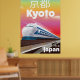 kyoto Japanese travel poster, Japan cartoon train poster. kyoto Japan train.