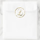 L Monogram Faux Gold Envelope Or Favour Seal. These classic round stickers are printed with non metallic ink on a flat sticker to look like gold. They are not beveled or embossed monograms but are designed to look like they are beveled or embossed monograms. These gold monogram seals are printed on a white background unless you select a different colour background before you proceed to checkout. In addition to being pretty wedding stationery supplies, these elegant wedding invitation envelope seals also make great monogrammed custom Christmas card seals, personalised holiday greeting card envelope seal stickers and customised Xmas card monogram seal stickers.