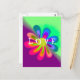 This postcard features a retro flower in bright colours of pink, green, purple and blue. Reminiscent of the 60's & 70's the current text, "L O V E" can be changed if you like.