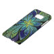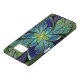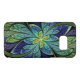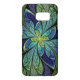 Abstract Samsung Galaxy case with "La Chanteuse IV," an Apophysis fractal by Susan Wallace. Copyright © 2010, Susan Wallace. Faux stained glass leaves of green and turquoise frame a central flower in shades of blue and purple.