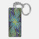 Faux stained glass leaves of green and turquoise frame a central flower in shades of blue and purple. Round and square acrylic keychains also available.