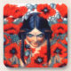 Dark haired femme fatale with braids and piercing, maleficent green eyes, hiding in a field of bright red flowers. Beautiful Illustration entitled, "La Destruction", for Baudelaire's "Les Fleurs du Mal" (Flowers of Evil) by German Symbolist painter, Carlos Schwabe (1900).