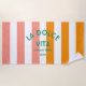 The Cinque Terra beach towel is perfect for your getaway... orange and pink cabana stripes with sea green "La Dolce Vita" lettering. Personalise with the details of your sunny vacations... year and destination. Perfect for a family or friends beach trip or destination bachelorette or as a memento for a past trip. Matching accessories available in the La Dolce Vita Cinque Terra Cabana Stripe Collection.