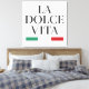 Celebrate the essence of Italy and the joy of living well with this “La Dolce Vita” Stretched Canvas Print. Featuring bold black typography and classic green and red accents inspired by the Italian flag, this decorative art piece adds a touch of elegance and positivity to any space. Perfect for home, office, or as a thoughtful gift for Italian culture lovers and those inspired by the sweet life.