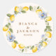 Designed to elevate your table décor, these lemon name tag stickers help guests easily find their seats while adding a stylish and cohesive look to your event. The fresh lemon citrus design paired with blue floral accents makes them ideal for a La Dolce Vita wedding theme, Italian bridal shower, or summer destination wedding.