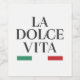 Turn every toast into a celebration of Italian elegance with the "La Dolce Vita" wine bottle label. Featuring refined black lettering and the signature green and red of Italy, this label brings a sense of joyful sophistication to any bottle, making it ideal for dinner parties, gifts, or special occasions. Share the sweet life and elevate your table with iconic Italian style.