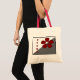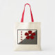 Tote bag with my original digitally created three-colour design. This chic design has a large simplistic red flower towards the upper right corner and the word "fleur" in red against a diagonally divided grey and white ground. This design can be used on any of a number of different bags.