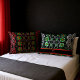 The cushion is small to medium sized. It can be washed. It is well constructed. The material used is pleasant and feels decent quality. It has a very slight plush feel which is good. It is well labelled and its care clearly stated. Theres nothing not to like about it. All in all a good item. The deduction of one star overall is due to long delays in delivery to the UK. It's not clear if this was due to Zazzle or somewhere else in the chain as I did not receive status updates of dispatch or progress. I cannot comment anymore on that other than to say that was our experience but it may not be the same for you. The printing was surprisingly close to what we were expecting. Its an art piece and on material so its hard to assess the precision of printing but it seems close to the original. The soft lines are reproductions of the original. The colour is a fair reflection of the painting. This was printed in the US and it looks like US quality. No issues.