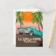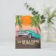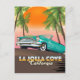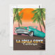 La Jolla Cove California travel poster with a beautiful old retro car by some tall swaying palm trees.