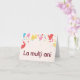 This card is great fun and good quality. I loved the humour inside and on the back. There is the opportunity to change the orientation of this card from landscape to portrait, which I did. It is relatively straightforward to amend the typeface to fit the new orientation. It was well packaged with no plastic. The printing on this card is excellent.