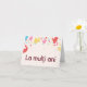 Design is brilliant - there is a male version and a female version of this cartoon and I bought both! You can personalize all the type on this card. I love these cartoon cards from Le Grand Art. I will be coming back to buy more. So pleased with the quality. Great colour and good quality cardstock.