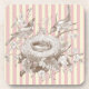 A beautiful vintage image, of two doting parents, feeding their young in their nest, which has been bathed in an antique gold and then placed on a pink and cream back ground. © Wickedly Lovely