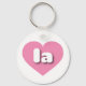 This keychain features a vibrant pink heart containing the bold, white, rounded lower case letters la, a playful abbreviation for Louisiana, the pelican state or Los Angeles, the city of angels.