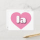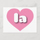This postcard features a vibrant pink heart containing the bold, white, rounded lower case letters la, a playful abbreviation for the state of Louisiana or the city of Los Angeles. The reverse side of the postcard is blank, awaiting your customised text or handwritten sentiments.
