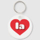 This keychain features a vibrant red heart containing the bold, white, rounded lower case letters la, a playful abbreviation for Louisiana, the pelican state, OR Los Angeles, the city of angels.