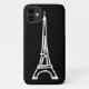The Eiffel tower. White stylised illustration. The background colour is customisable