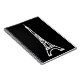 The Eiffel tower. White stylised illustration. The background colour is customisable
