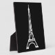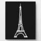 The Eiffel tower. White stylised illustration. The background colour is customisable