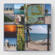 A colorful wall clock featuring a few vibrant beach and floral images of a sunny, one day visit to Labadee, Haiti.