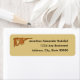 Bracket with look of wrought iron. Graphic image of right angle bracket, with three leaves of varying sizes, sits in upper left corner. Personalise with name and address to the right. Image is dark red/brown on tan background.