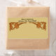 Architectural brackets. Graphic image of right angle brackets with three leaves of varying sizes. Personalise with your return address at top. Image is dark red/brown on tan background.