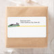Grey cat (Russian Blue) is laying atop a green worm. Personalise with your business information above line. Run labels through your printer for customer addresses.