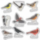 Backyard birds sticker set. Display together or separately. Set includes stickers of a woodpecker, cardinal, robin, roadrunner and other birds.