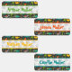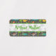 Labels with a pretty pattern on the theme of dinosaurs perfect to mark your child's clothes! A background pattern with different types of dinosaurs, and a beautiful font writing that highlights the theme placed on a transparent white strip of dinosaur footprints. With the help of the design tool, you can modify the dimensions of the writing font or any other changes.