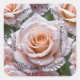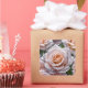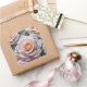 Beautiful pink rose and raindrops label with editable text.