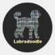 Labradoodle Dog Silhouette Yellow&Blue Grid Classic Round Sticker