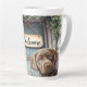 Perfect latte mug to welcome you to your favorite hot beverage in the morning or finishing your night. This adorable brown labrador in front of the door with Welcome sign. Great gift item for any occasion. Designed by me in USA. Image color may vary on different viewing screens. There are options to purchase this image on a different mug item with different pricing.