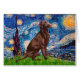 Starry Night by Vincent Van Gogh, adapted to include a chocolate Labrador Retriever.