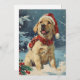 Celebrate the magic of Christmas with our delightful holiday card featuring a loveable Labrador adorned in a charming Santa hat. The Labrador's friendly eyes and wagging tail convey the spirit of the season, creating an instant mood of joy and festivity.