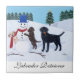 Labrador Christmas with Snowman Painting Tile